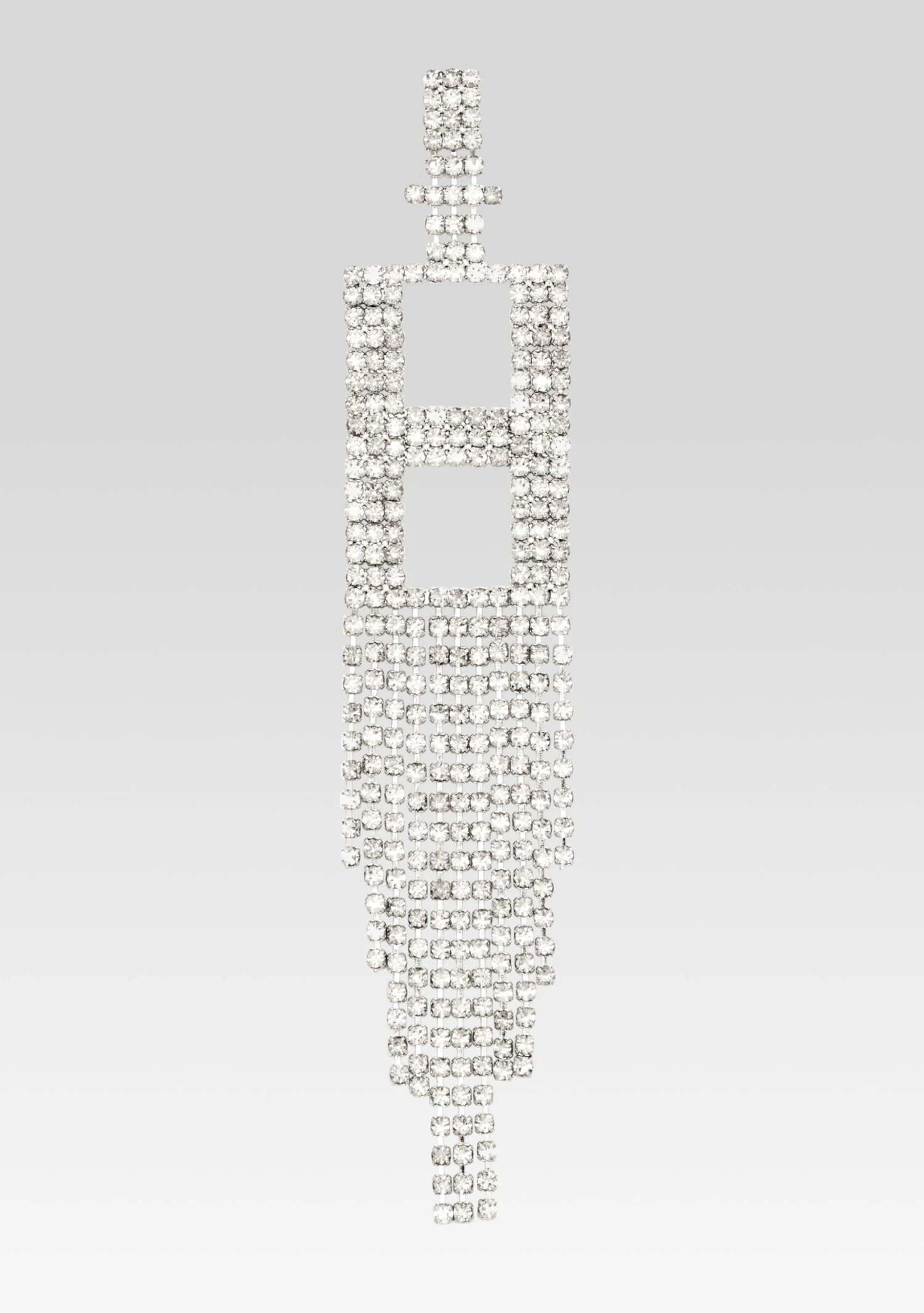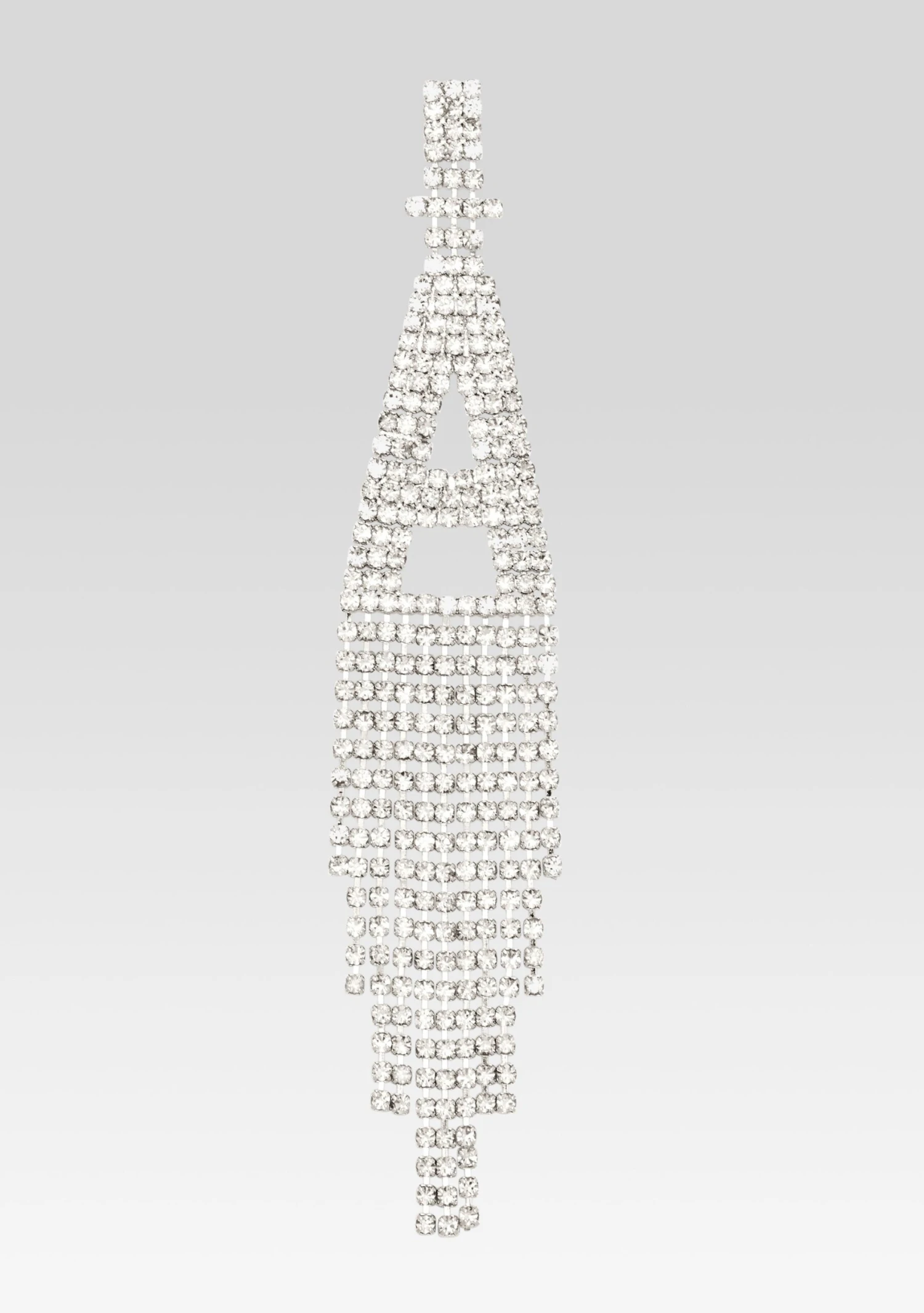Crafted with scores of light-catching crystals, our Alphabet earrings make impact at every turn. Each letter features a unique, shoulder-grazing fringed design. Mix or match the earrings and wear them with one of our dresses for an evening event or a bold daytime look. Shown here in Silver.
