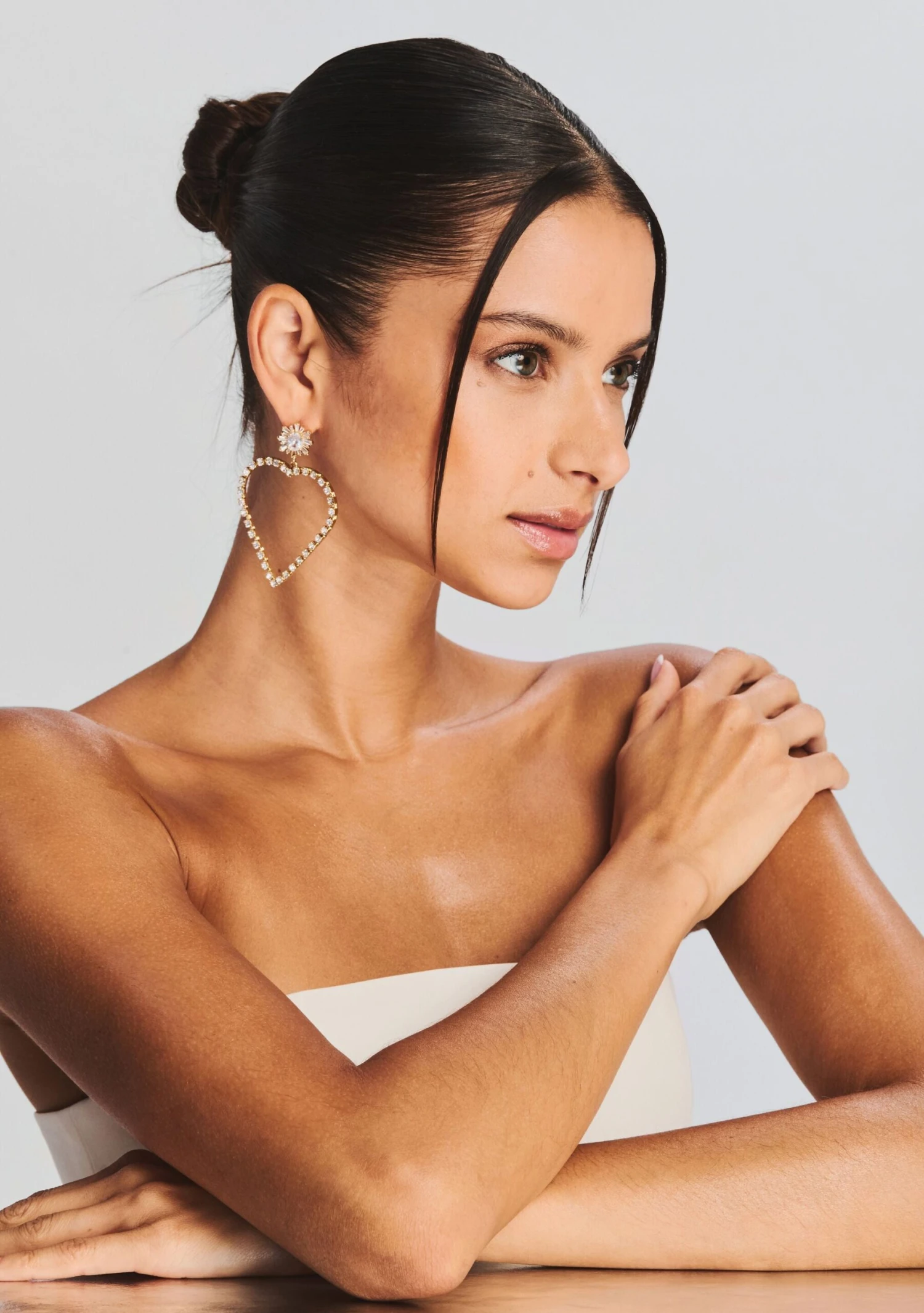Accessorize your look with Keren Wolf’s dainty Amor Earring featuring an irresistible heart design decorated with bright embellishments and a gemstone stud. Shown here in Gold.
