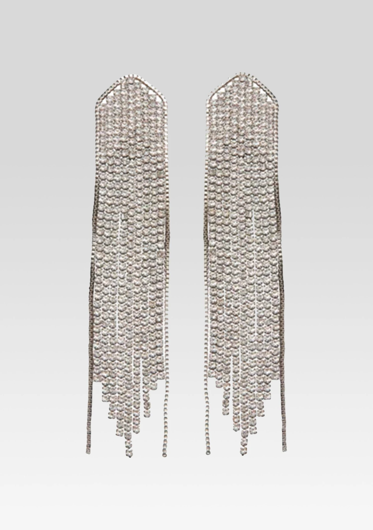 Be the life of the party in Keren Wolf’s Brony Earring features assymterical fringe-style chain tassels for the perfect glam look. Shown here in Silver.