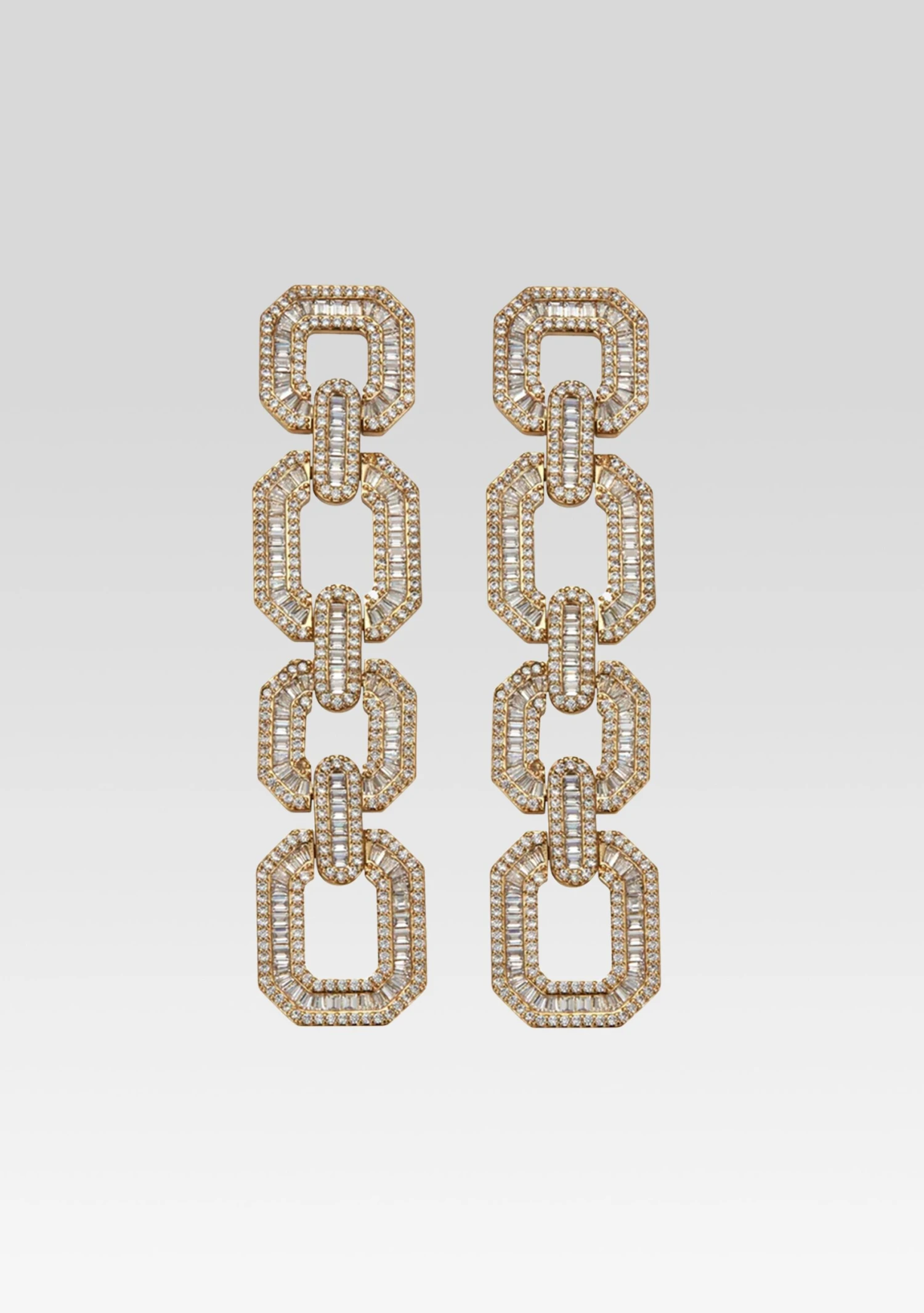 Complete your accessory collection with Keren Wolf’s Bruno Earrings featuring a timeless drop chainlink arrangement with gemstone embellished details. Shown here in Gold.