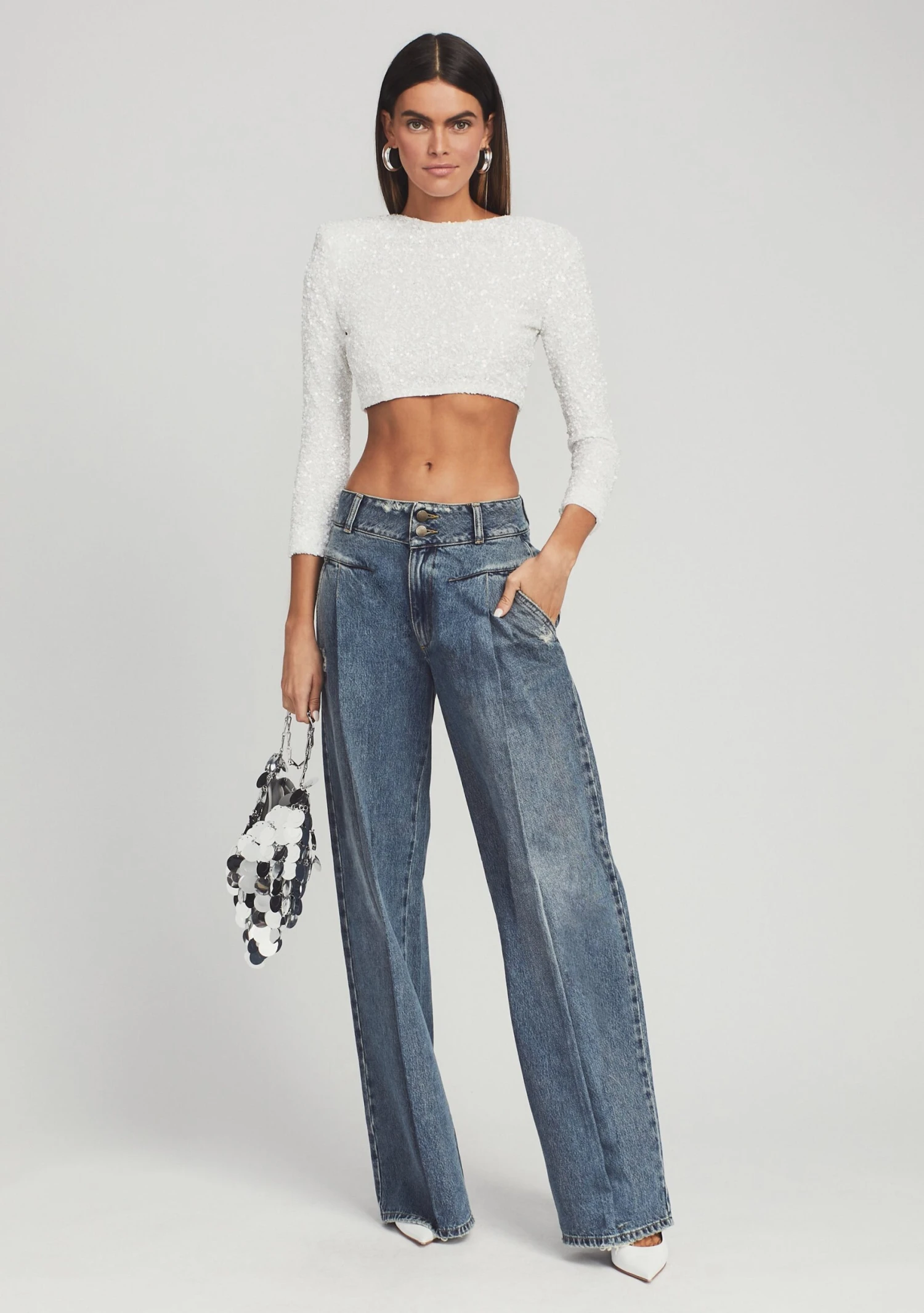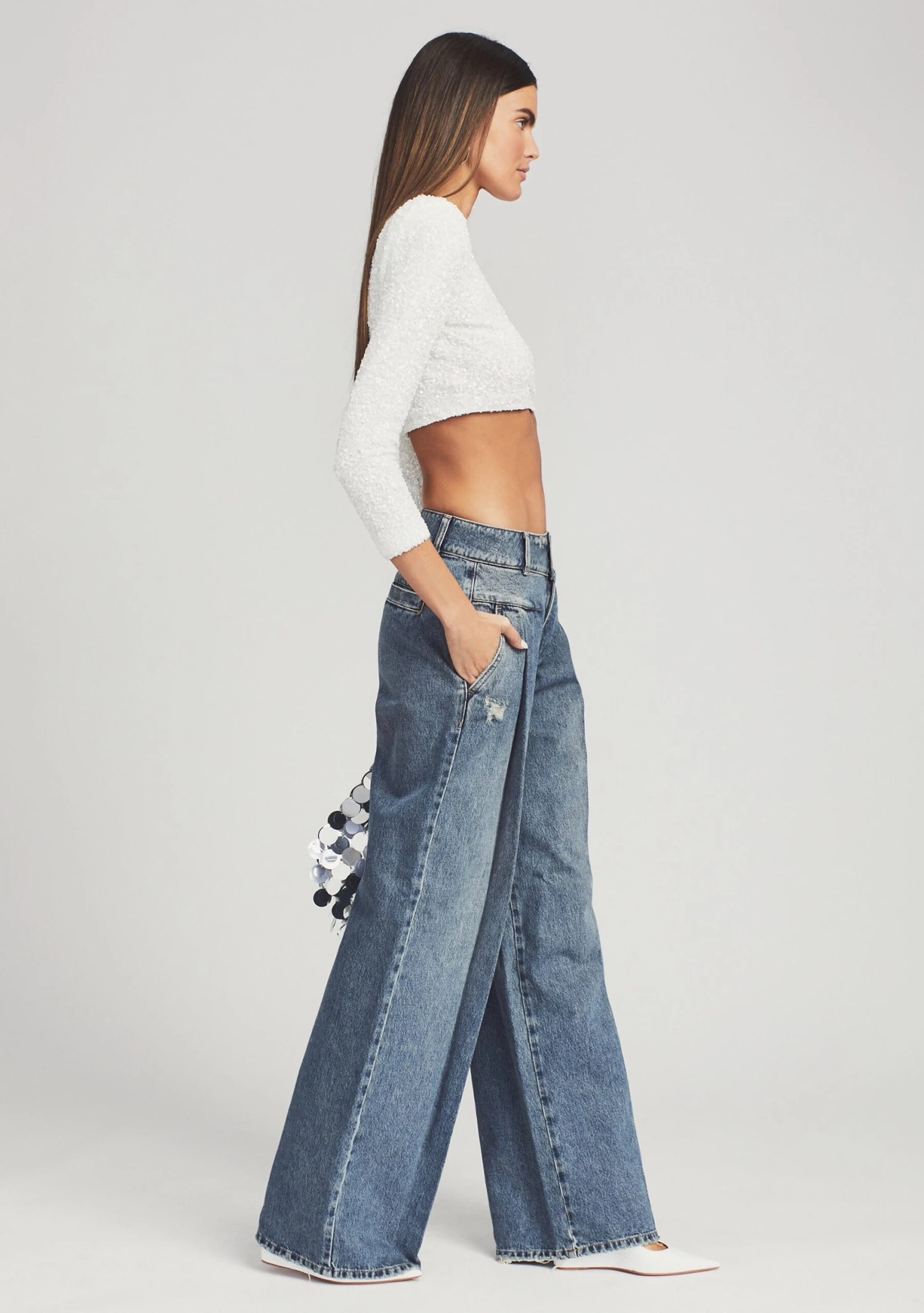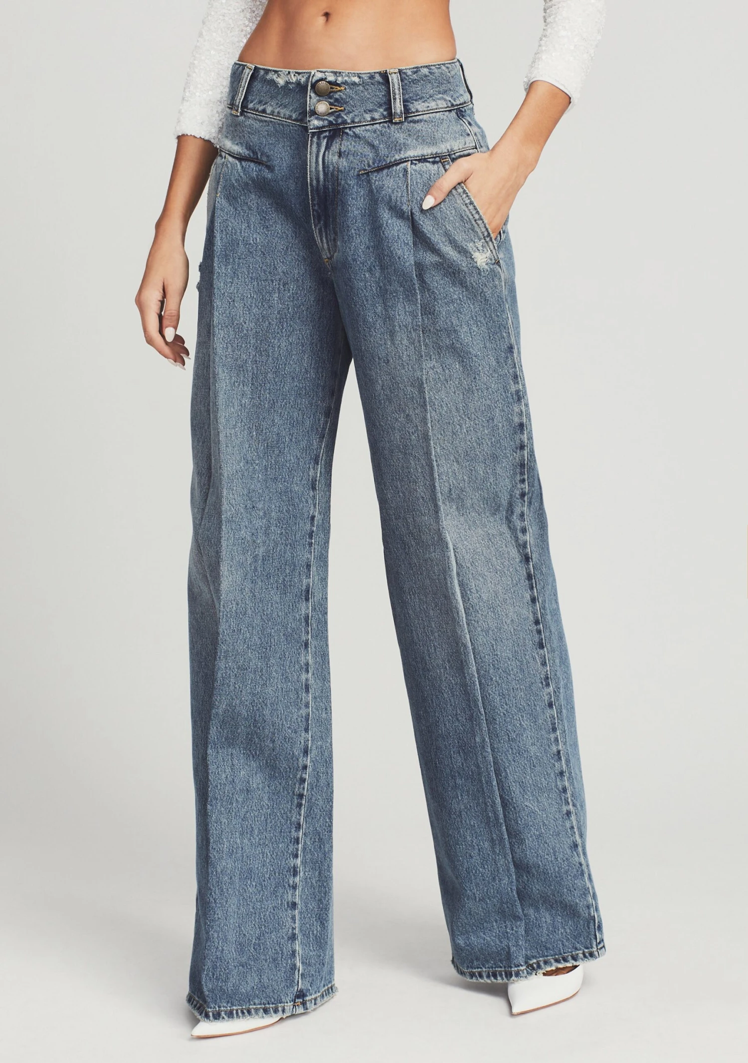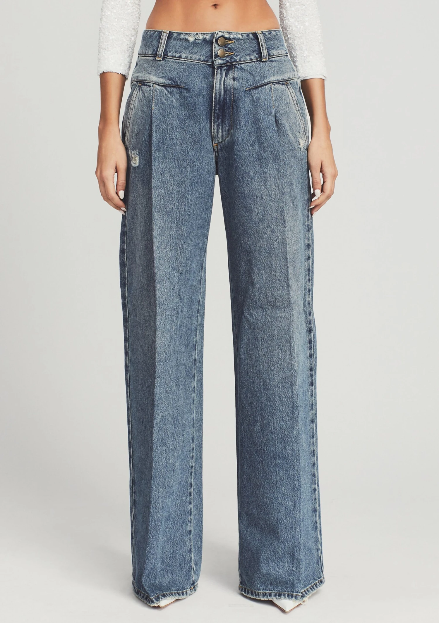 Infused with a distinct 70โs vibe, the Gladys Jean is a wardrobe essential. A shaped waistband and topstitching at the hips create a tailored feel. The jeanย is designed with two front and back pockets with light distressing throughout. Shown here in Brookhaven.