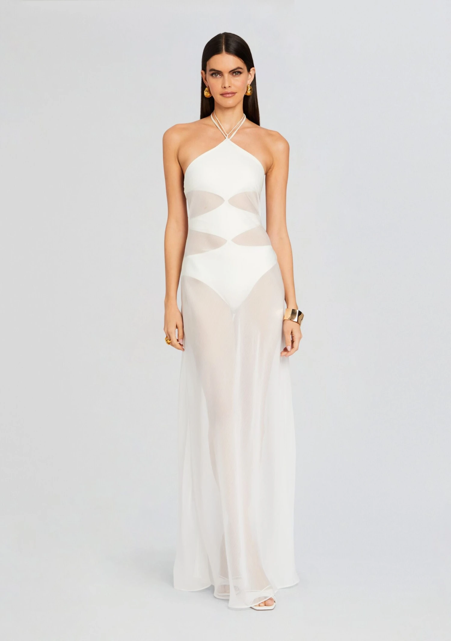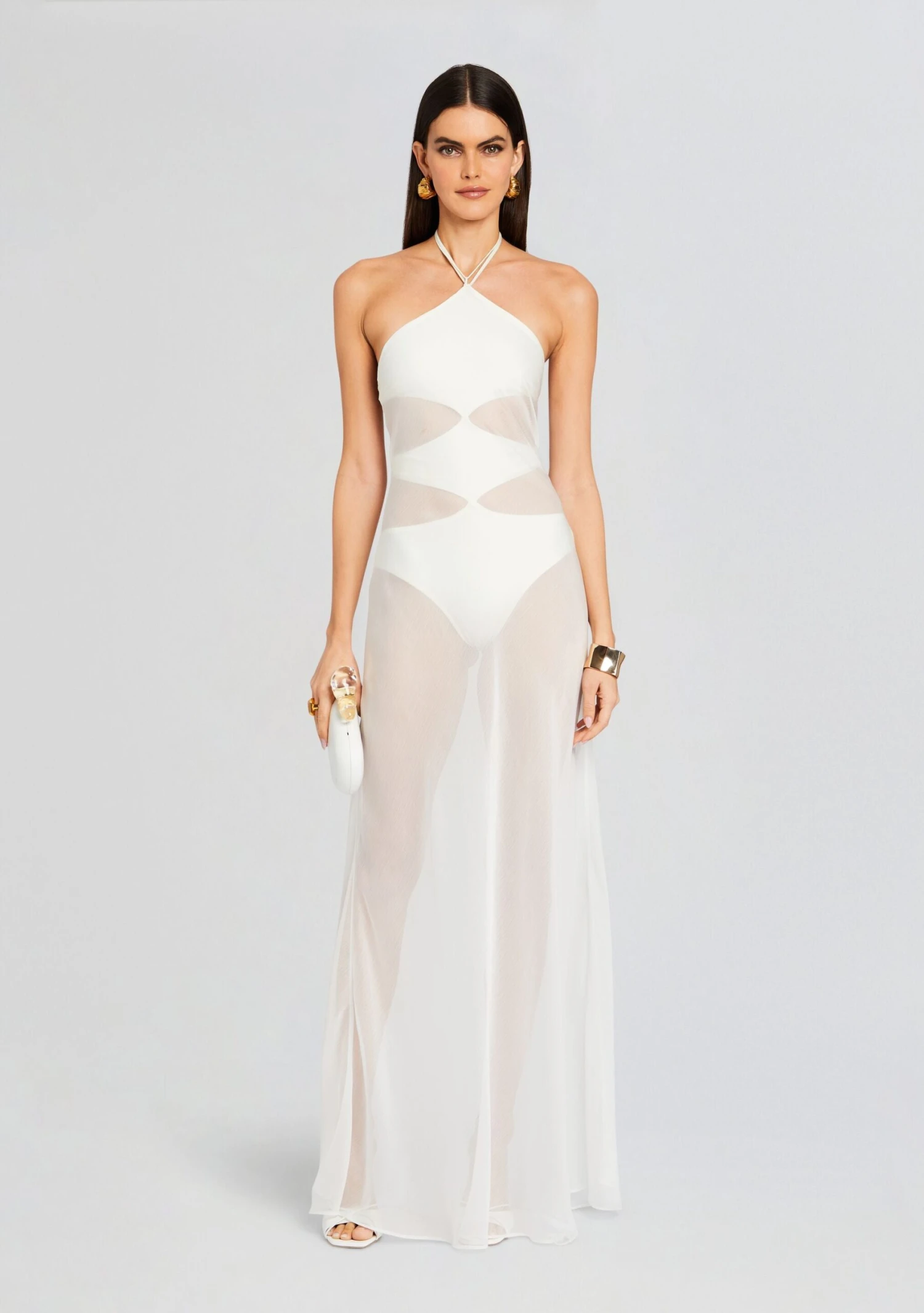 Whether you’re lounging by the shore or sipping cocktails at a beachside bar, Shani Shemer’s Heleny Dress has you covered. This captivating dress features sheer fabric that drapes delicately, offering both glamour and comfort in one stunning ensemble. Perfect for those sun-kissed days, this dress embodies breezy chic with its lightweight, sheer material that effortlessly captures the essence of the coastline. Shown here in Cream.