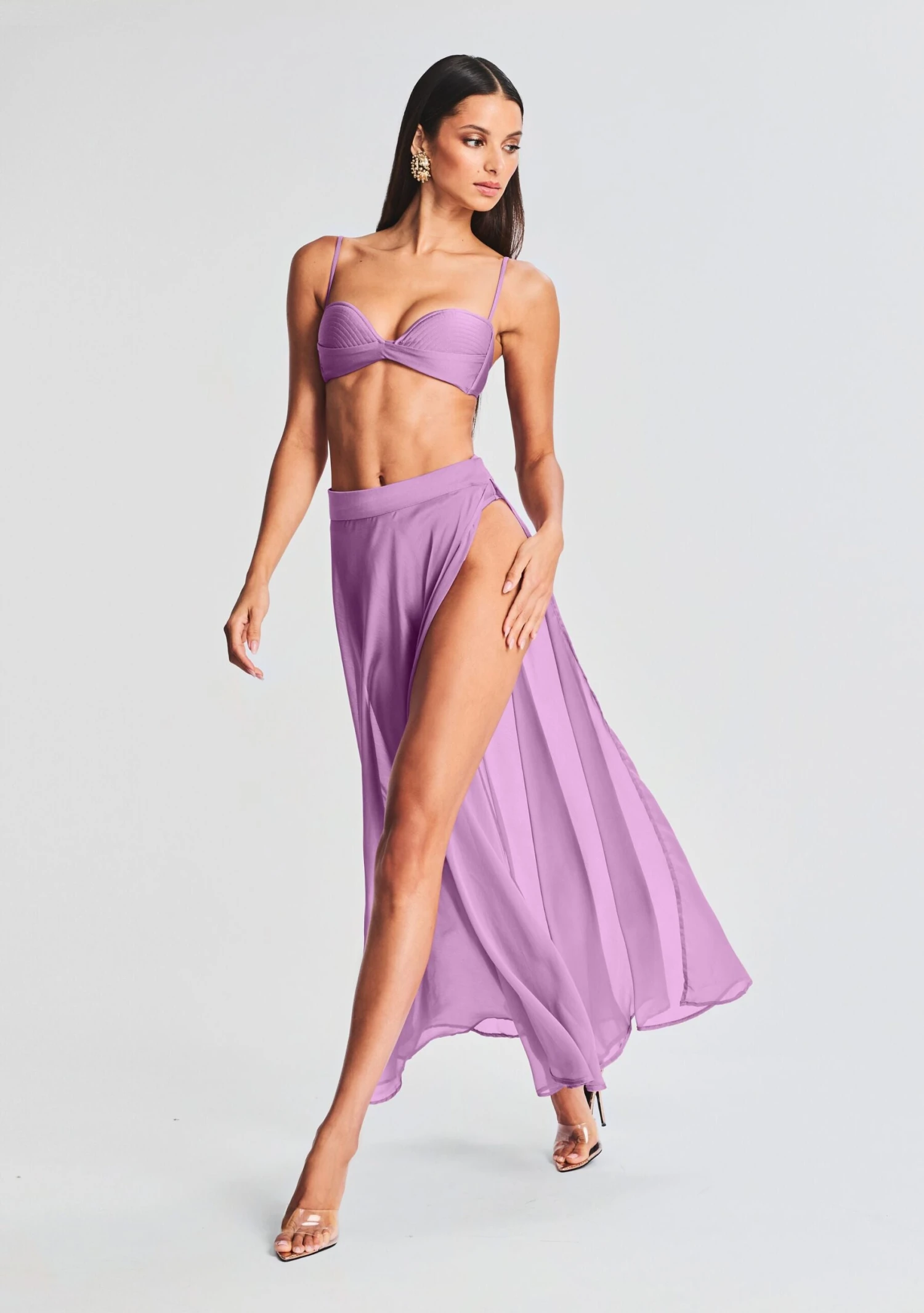 Elevate your seaside style in Shani Shemer’s Karen Bikini Top. This swimsuit piece features barely-there straps and a supportive, bustier bodice, perfect for lounging. Shown here in Lilac Purple.