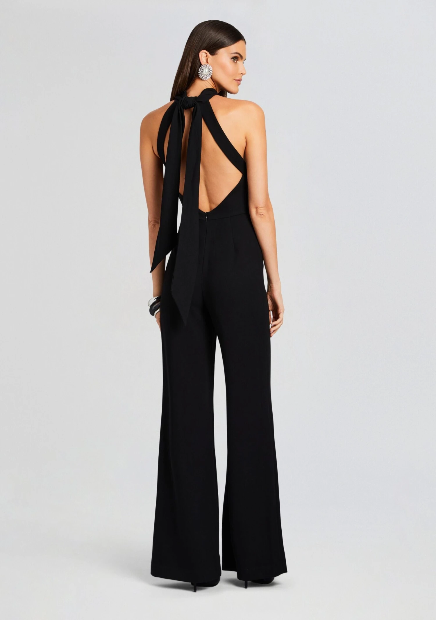 Define your style with Sans Faff’s Taylor Tie Back Jumpsuit- a fusion of allure and sophistication that’s designed to flatter and captivate. This jumpsuit, featuring an open back and a flared bottom, is a statement piece for those who appreciate modern elegance and a touch of drama. Shown here in Black.