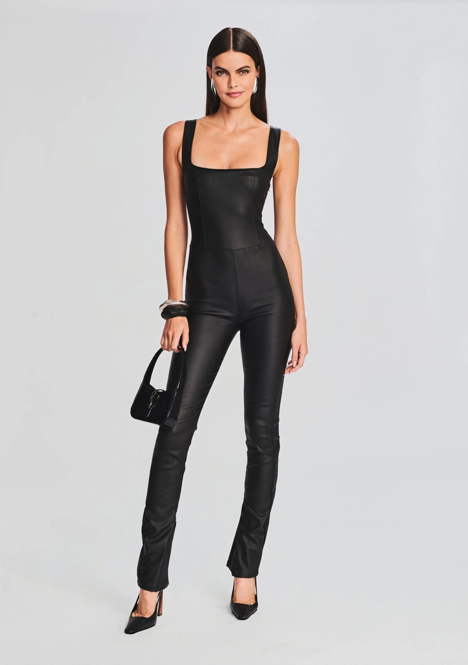 Stay effortlessly chic with SER.O.YA’s edgy Viper Catsuit, suitable for various occasions. This catsuit features a chic coated denim finish, perfect for making a bold style statement. Shown here in Coated Black.